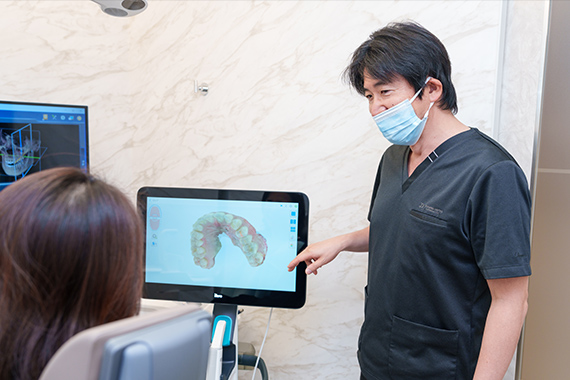 当院では、3D口腔内スキャナー「iTero」を導入しています。3D口腔内スキャナーでスキャンし、歯並びや補綴のシミュレーションを作成することで、患者様一人ひとりに合わせた治療を行います。