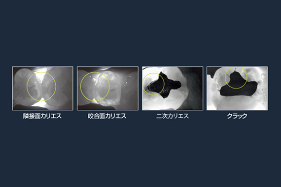 当院ではう蝕診断用口腔カメラを用いて、むし歯の早期発見に努めております。う蝕診断用口腔カメラは、近赤外線とよばれるレーザー光で歯を透過し、肉眼やレントゲンでは見つけにくいむし歯を見つけることができます。放射線を全く使用しない装置なので、妊婦さんにも安心してお使いいただけます。う蝕診断用口腔カメラの導入により、高精度の画像診断が可能になりました。